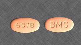 METAGLIP 5 mg/500 mg tablet is a pink oval-shaped, biconvex film-coated tablet with “BMS” debossed on one side and “6078” debossed on the opposite side.