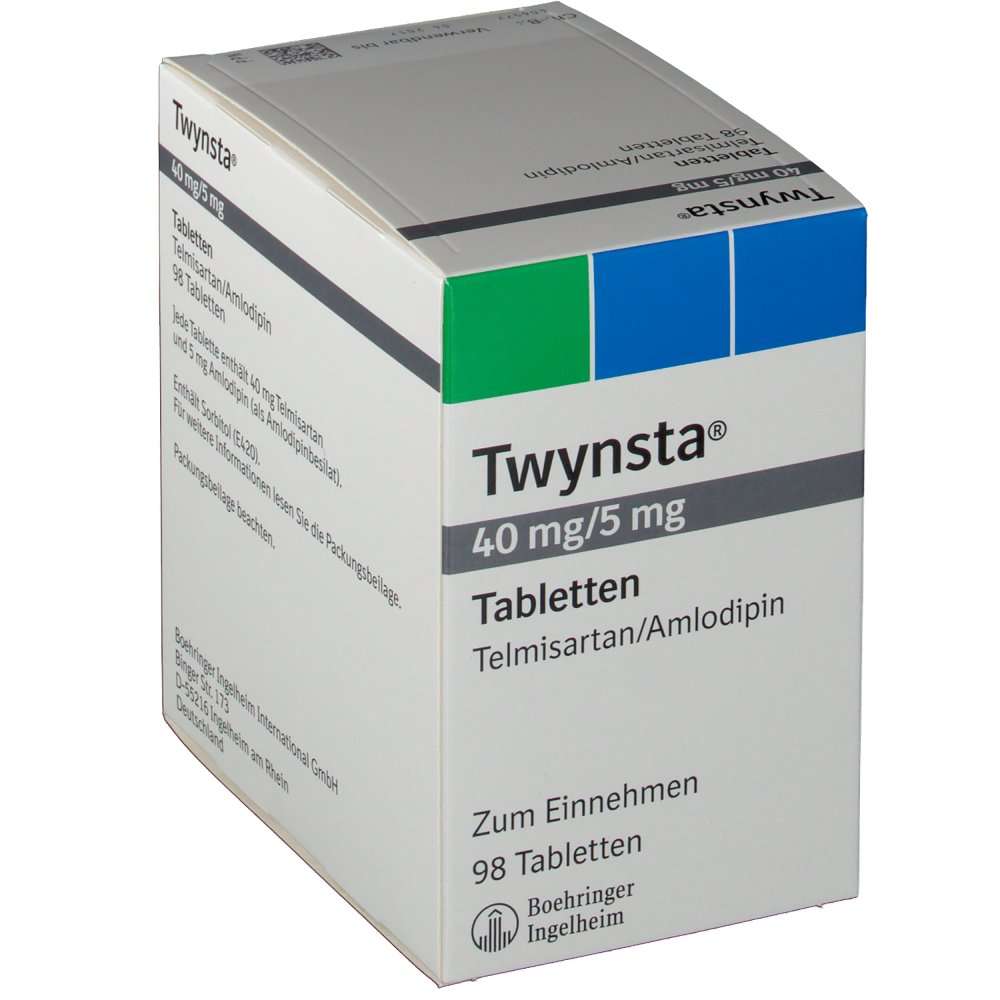 Clinical Trials: An 8-week randomized, double-blind, placebo controlled study in 1461 patients with mild to severe hypertension compared Twynsta to either monotherapy component across 16 treatment arms. The four key treatment combinations, including telmisartan 40mg or 80mg and amlodipine 5mg or 10mg, had statistically significant reductions in in-clinic seated trough cuff systolic and diastolic blood pressure (SBP and DBP) compared to the respective individual monotherapies.